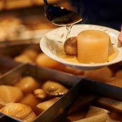 東京で日本の“出汁文化”を味わうなら〈おでん屋たけし〉。特製のあごだしと鶏だし、2種類の旨みが織りなす創作おでんが自慢です。店内には大きなおでん鍋が据えられ、湯気と香りに包まれながら職人の手仕事を目の前で楽しめます。豊洲市場直送の新鮮な刺身、季節の食材を使った限定おでん、日本酒におでん...